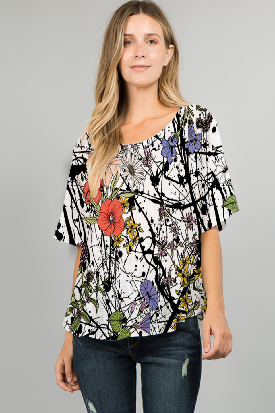 This subtle colors print is the perfect new addition to your wardrobe. Featured in the Et Lois Apple body, this top creates a flattering and comfortable fit with a wide half sleeve, scoop neck style and round hemline. Don’t miss out on this incredible addition to your wardrobe!