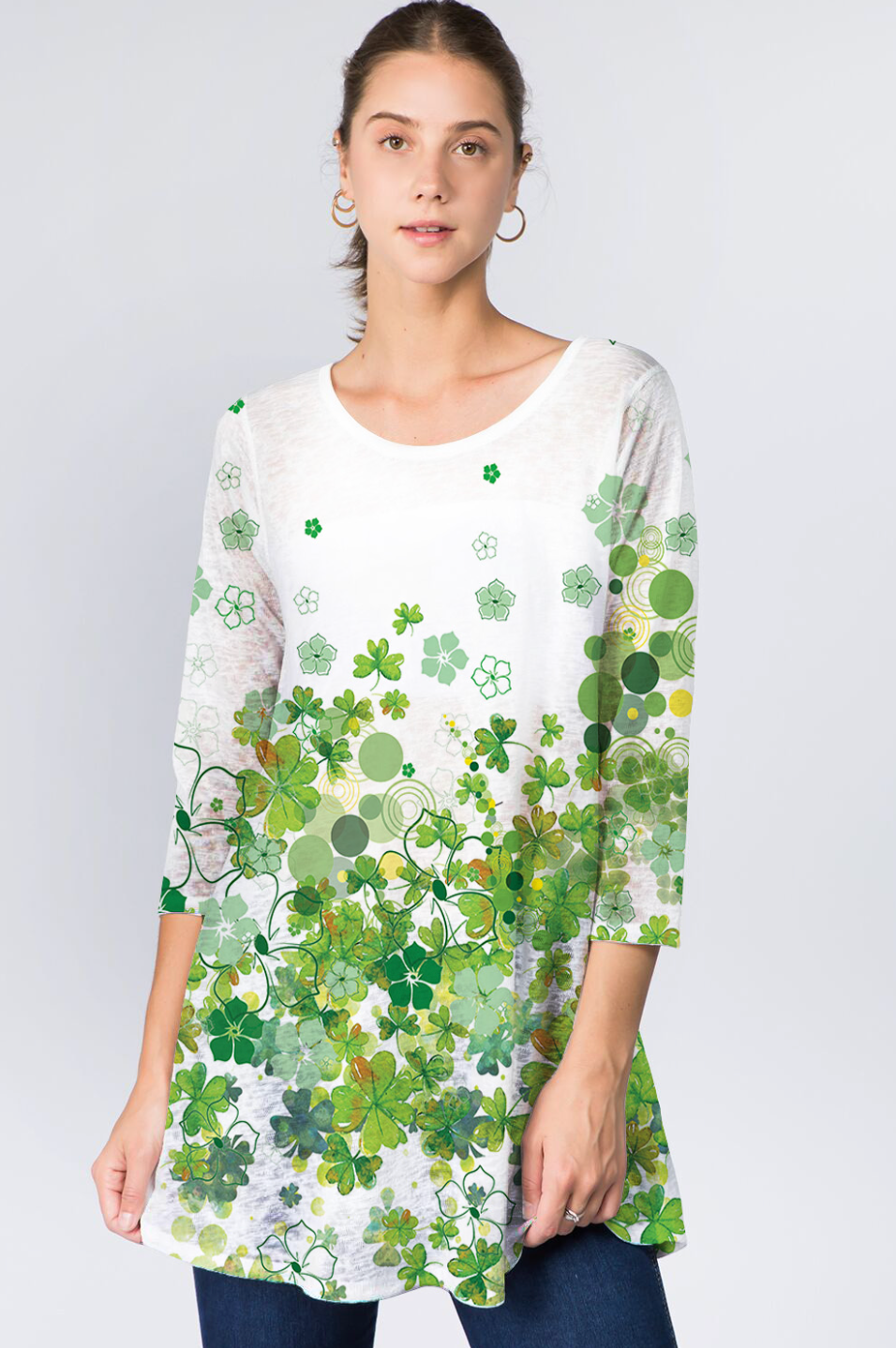 This St Patty's Day print is the perfect new addition to your wardrobe. Featured in the Et Lois Lowa body, this top creates a flattering and comfortable fit with a 3/4 sleeve length, a classic scoop neck, and A-line swing style. Don’t miss out on this incredible addition to your wardrobe!