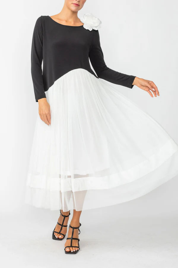 ASYMMETRICAL WAIST LINE MESH SKIRT DRESS