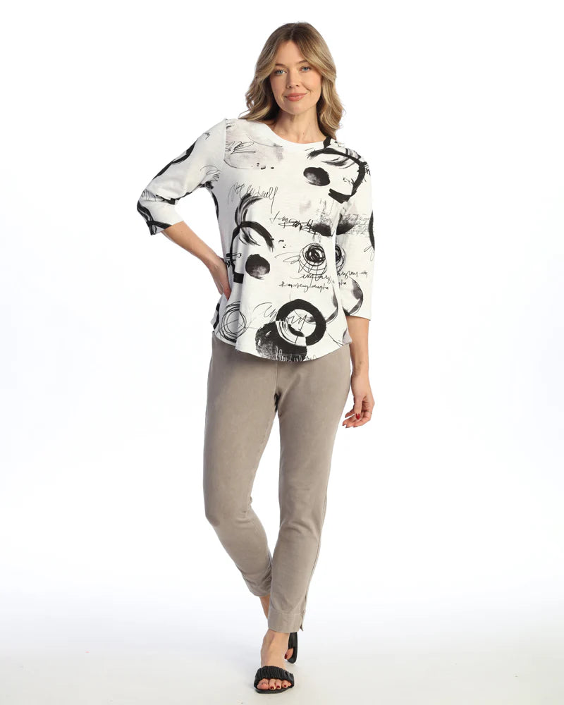 COTTON MODAL ROUND NECK TOP WITH 3/4 SLEEVES