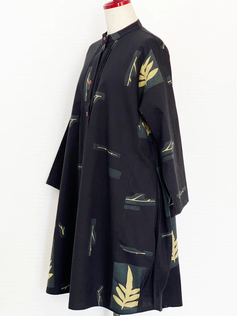 This black Herbarium print Pintuck Long Jacket is an essential addition to your wardrobe. Featuring a modern and stylish design, this jacket is expertly crafted with high-quality materials. It is the perfect piece to elevate your look with a touch of sophistication.