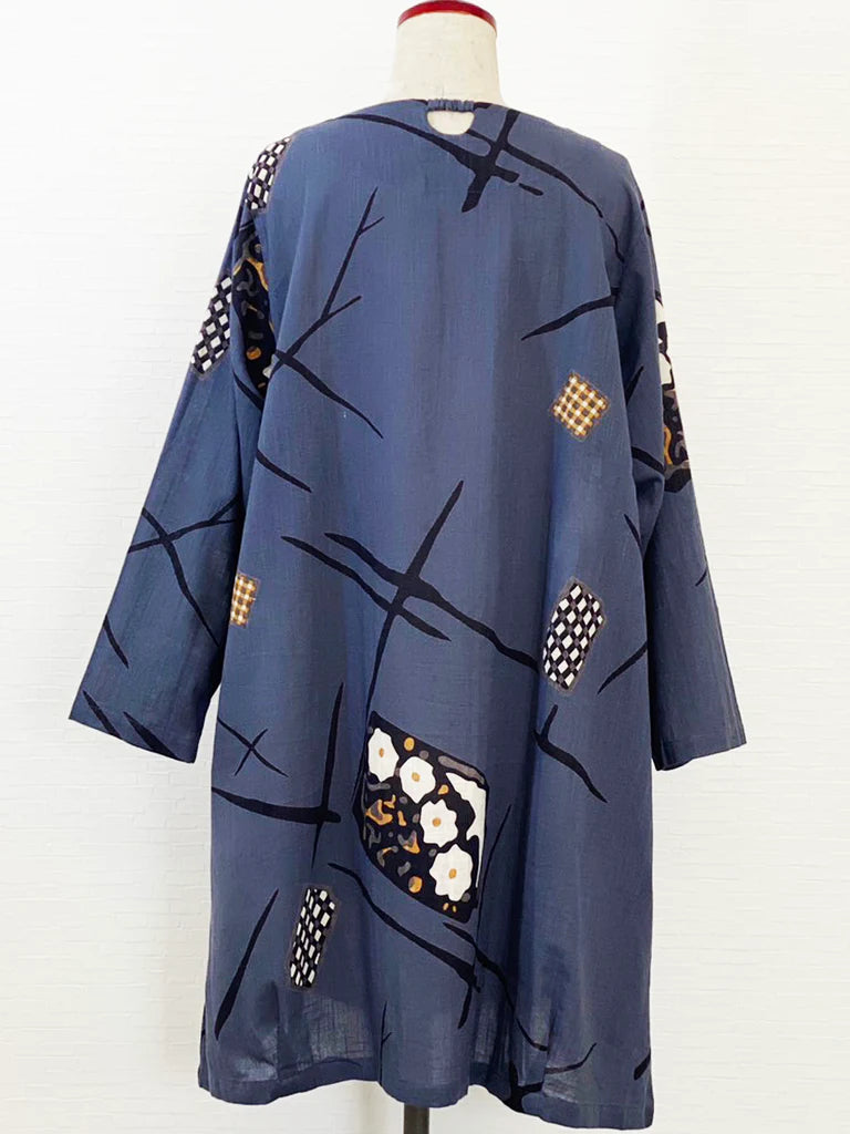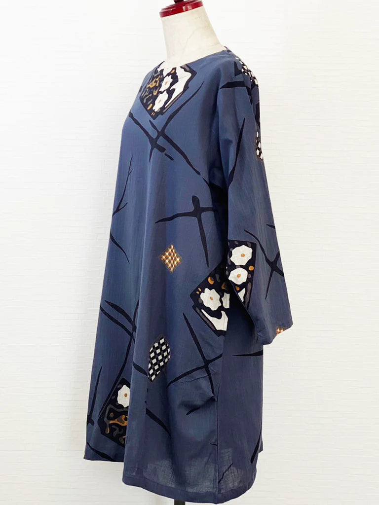 MONA LISA by Pure Fit - 233175-GR - Tuck Bubble Tunic - Blossom View Print - Grey (B)