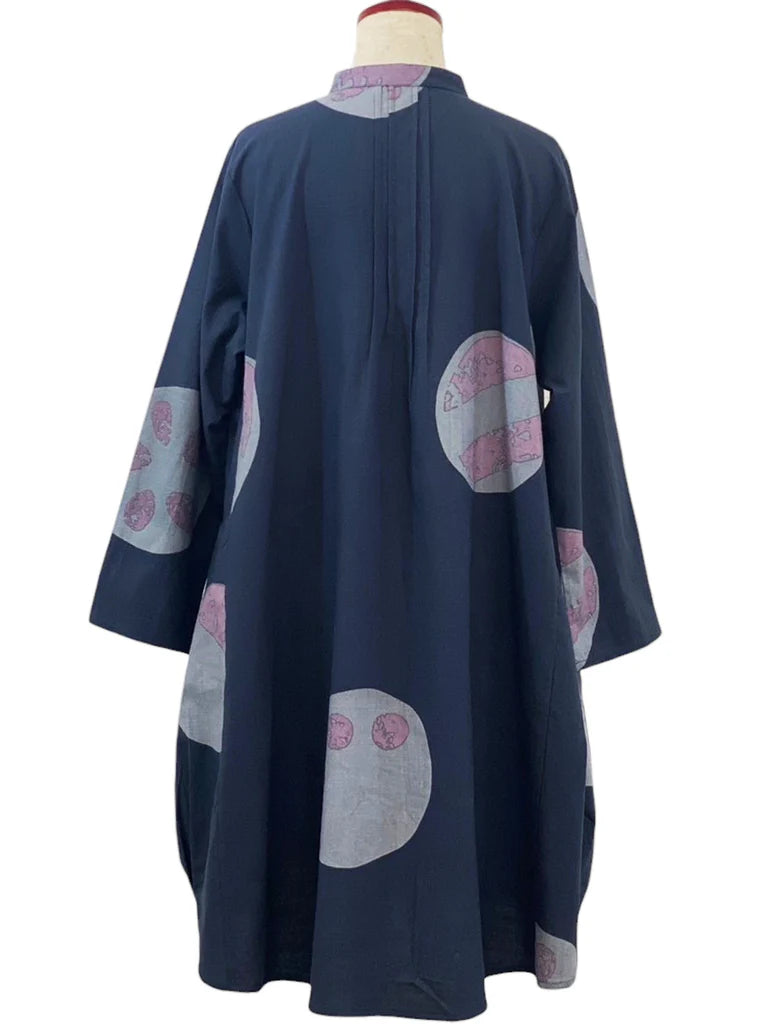 MONA LISA by Pure Fit - 244240-DB - Pintuck Long Jacket - Multi Bubble Print - Dark Blue (C)