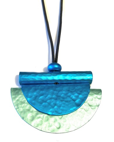 Born from the quiet alchemy of handwork, each pendant begins as a sheet of aluminum foil—hammered into soft ripples, folded into sculptural form, and brushed with luminous pigment that catches the light like a stroke of paint on canvas.