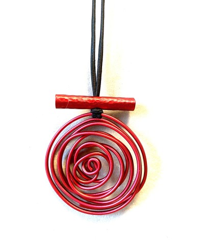 This collection of pendants is crafted from aluminum threads, each hand-folded to form a miniature sculpture. The anodization technique takes center stage here: a meticulous two‑step process of anodizing and pigment application that produces colors so rich, so deep, so saturated in hue that they effortlessly steal the spotlight.