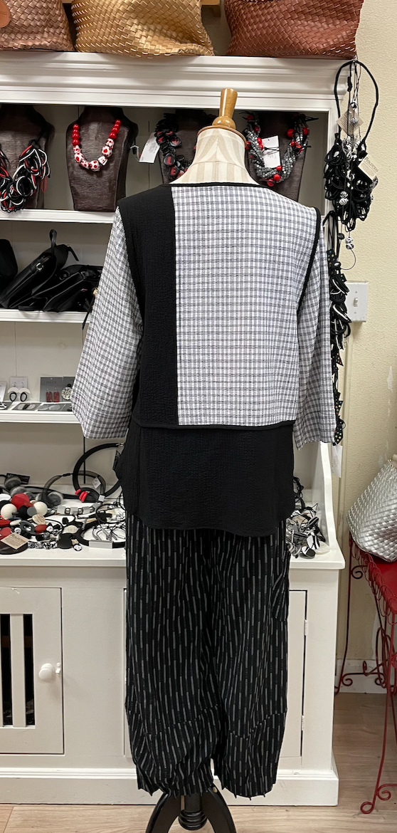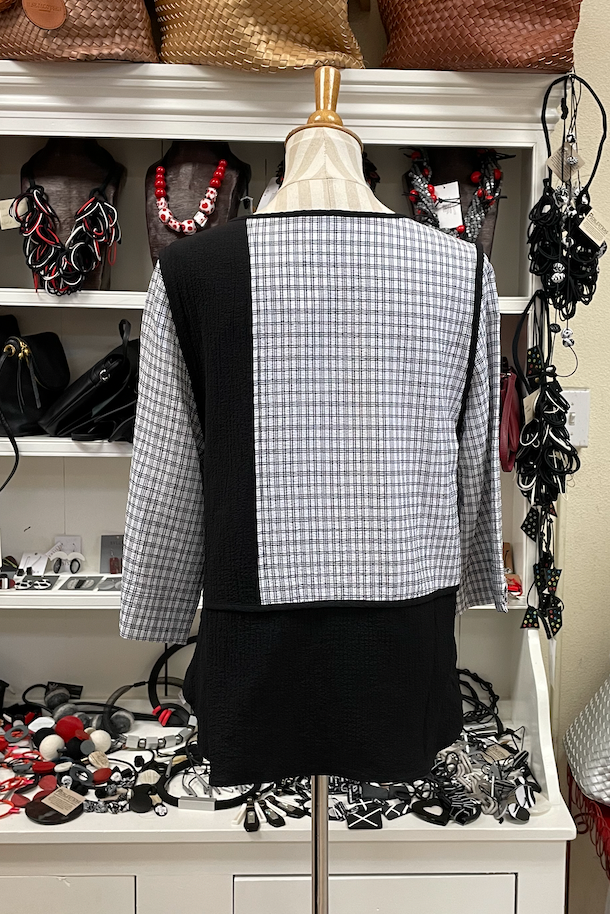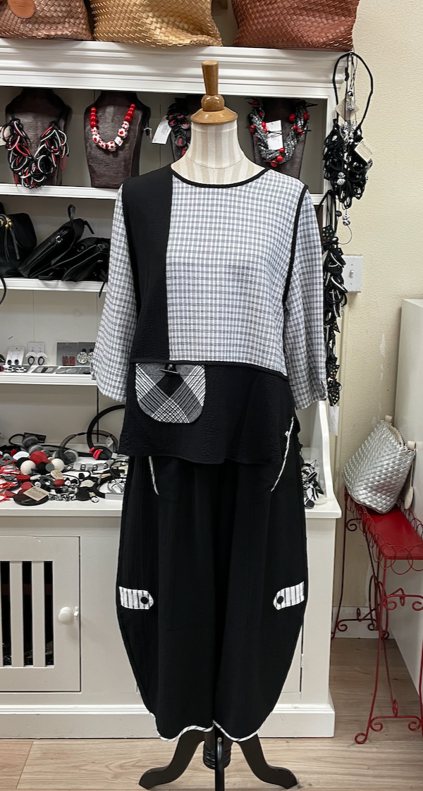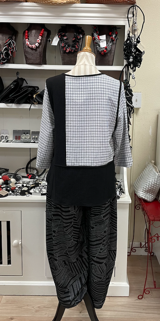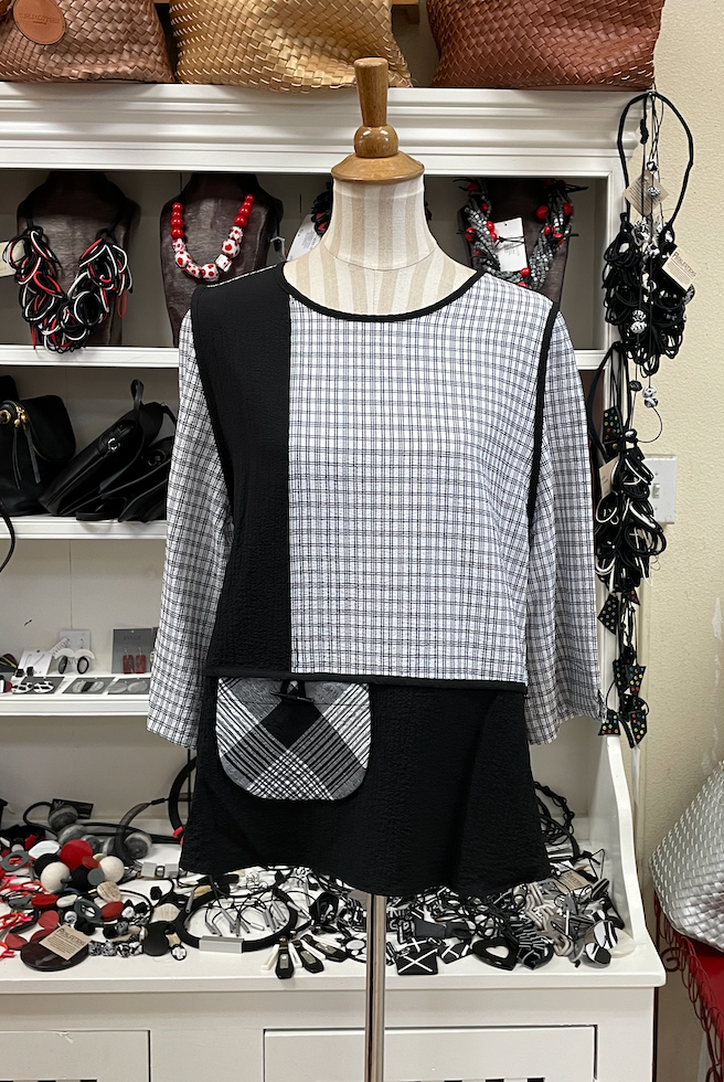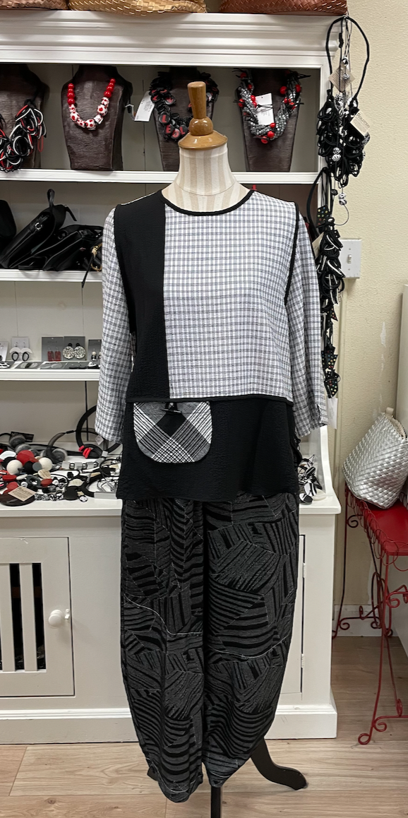 Moonlight Top with an asymmetrical pattern and front pocket detailing. This piece is easy to pair with a variety of pants or skirts for endless looks sure to turn heads.