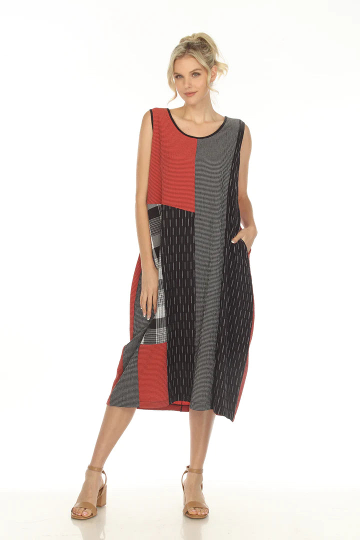 This gorgeous Moonlight dress features a unique coral block print with a striking plaid texture. Expertly crafted for a flattering fit, this dress is perfect for any special occasion. Add a touch of elegance to your wardrobe with this statement piece.