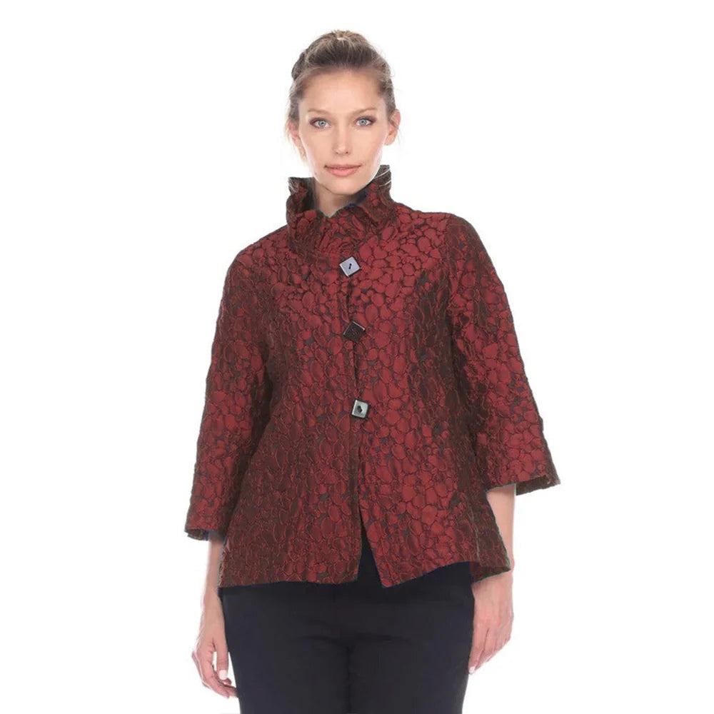 Moonlight Geometric Dotted Jacquard Button Front Jacket - 2455 TAF- RED