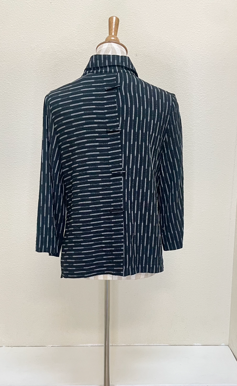 Sure to turn heads, this Moonlight Jacket features a single front flap pocket and black collar for a sleek and functional look. The chopstick button details on the front and back add a unique touch, while the red stitching detail adds a pop of color to spice up any outfit.