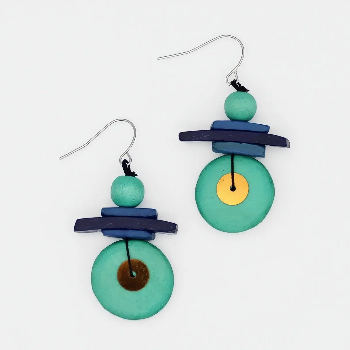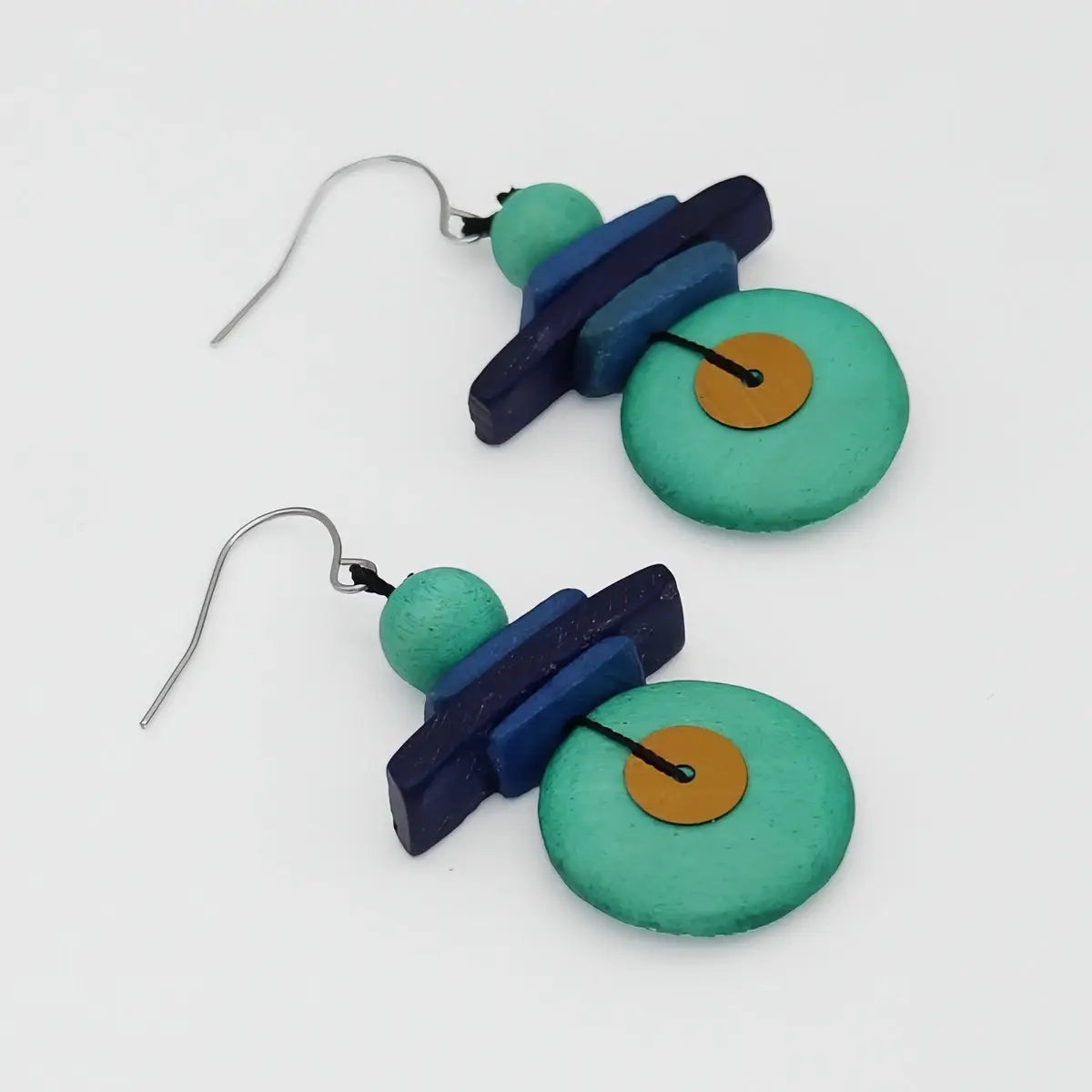 Complete you stylish look with Sylca's Assuta Teal Drop Earrings! These unique dangle earrings feature a mix of wood, gold, and round beads in blue and teal. Not only are they lightweight for all-day comfort, but their artistic design makes a bold statement. Add a touch of creativity to any outfit!