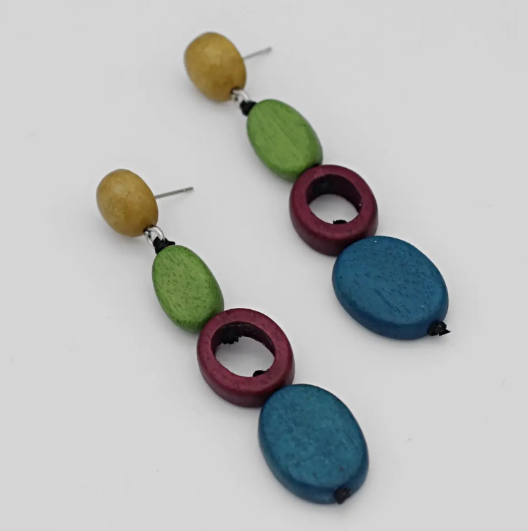 Enchanting and eye-catching, the Shiori Earrings from Sylca Designs are a must-have addition to your jewelry collection. The post design adds a touch of sophistication, while the vibrant hues of blue and lime, accompanied by a subtle purple accent, create a harmonious and visually striking combination. Handcrafted with love, these earrings feature lightweight wood beads that lend a natural and organic feel, adding a unique charm to your ensemble.