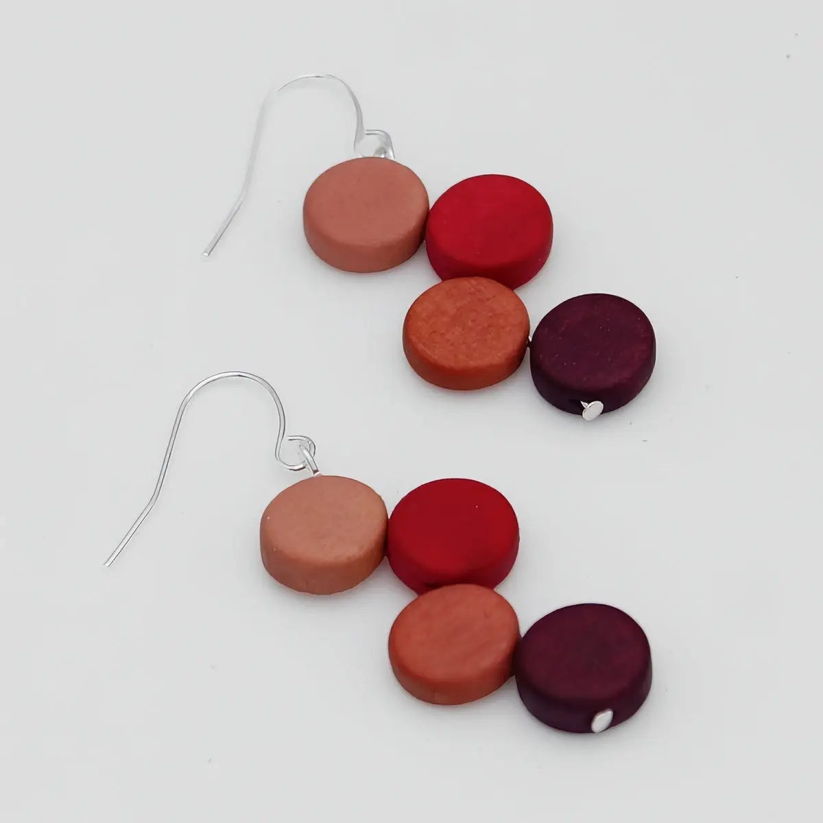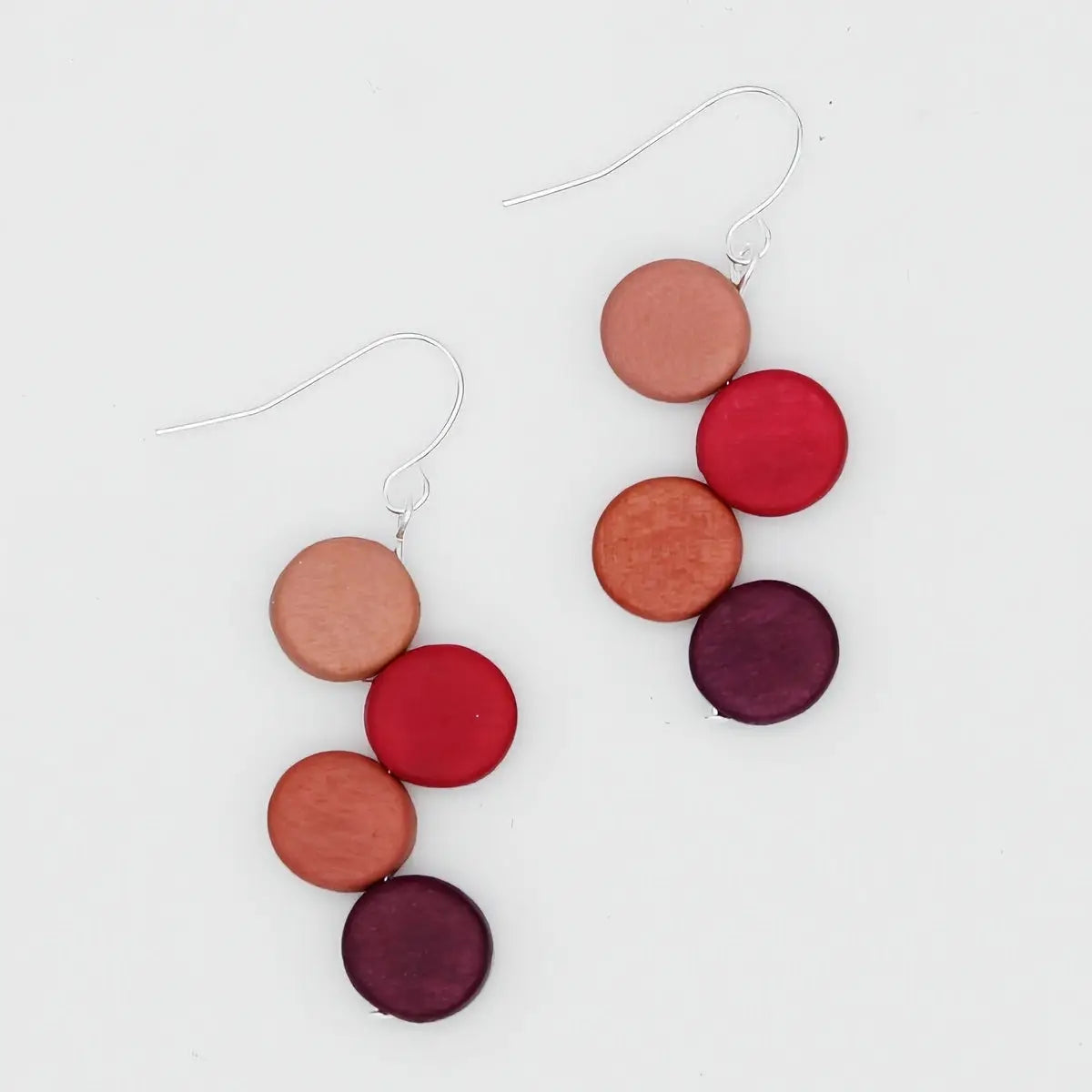 These raspberry dangle earrings feature four small wooden beads that dangles off a silver plated wire for a look that will surely stand out! Wear them solo for an understated look, or pair them with a coordinating statement necklace for a more complex, accessorized expression!